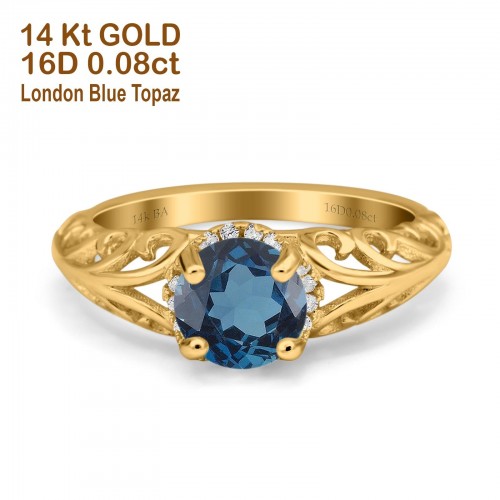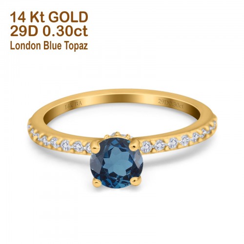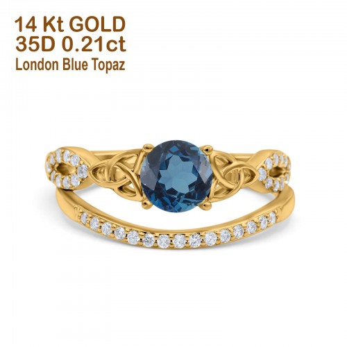 14K Yellow Gold 1.01ct Round 6mm G SI London Blue Topaz Diamond Engagement Wedding Ring Size 6.5