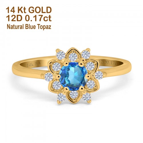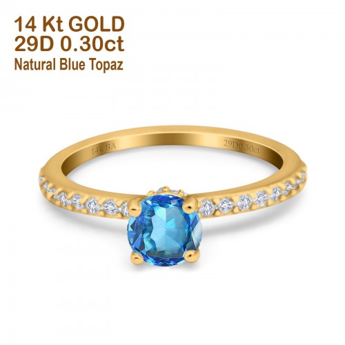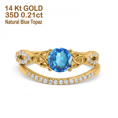 14K Yellow Gold 1.01ct Round 6mm G SI Natural Blue Topaz Diamond Engagement Wedding Ring Size 6.5