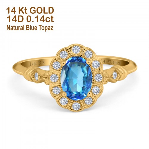 14K Yellow Gold 0.9ct Oval 7mmx5mm G SI Natural Blue Topaz Diamond Engagement Wedding Ring Size 6.5