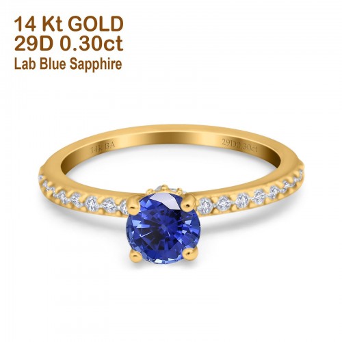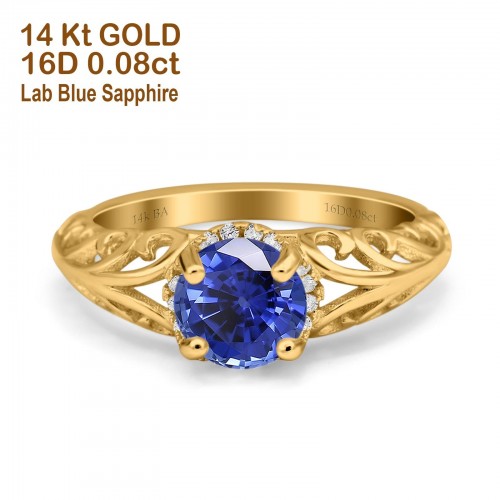 14K Yellow Gold 1.01ct Round 6mm G SI Nano Blue Sapphire Diamond Engagement Wedding Ring Size 6.5