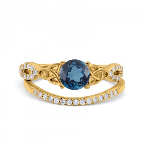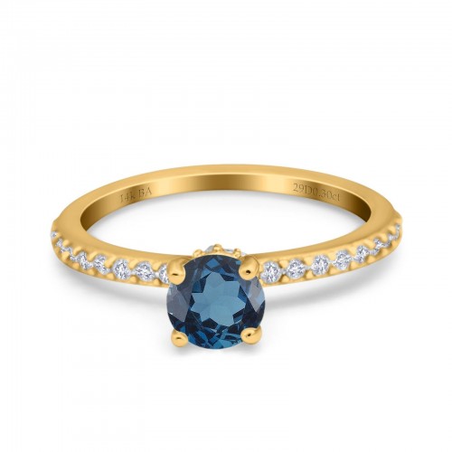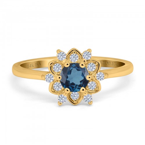 14K Yellow Gold 1.01ct Round 6mm G SI London Blue Topaz Diamond Engagement Wedding Ring Size 6.5