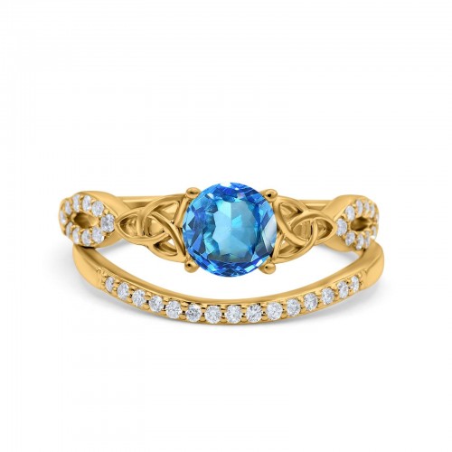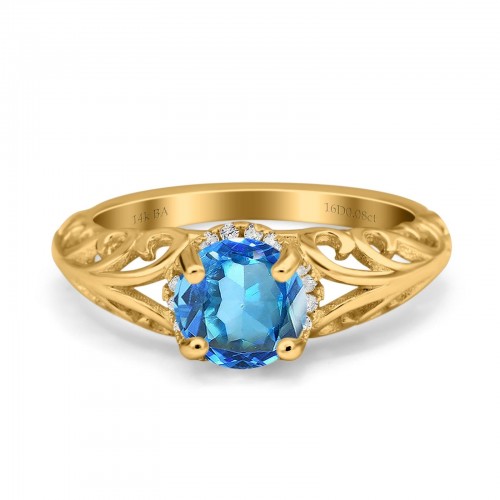 14K Yellow Gold 1.01ct Round 6mm G SI Natural Blue Topaz Diamond Engagement Wedding Ring Size 6.5