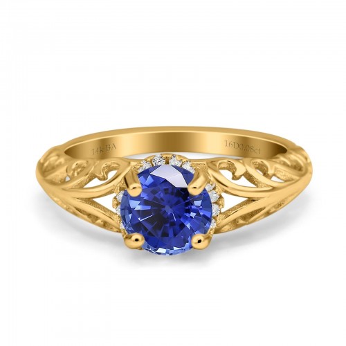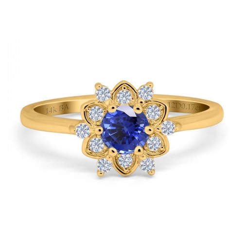 14K Yellow Gold 1.01ct Round 6mm G SI Nano Blue Sapphire Diamond Engagement Wedding Ring Size 6.5