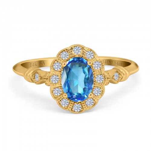 14K Yellow Gold 0.9ct Oval 7mmx5mm G SI Natural Blue Topaz Diamond Engagement Wedding Ring Size 6.5