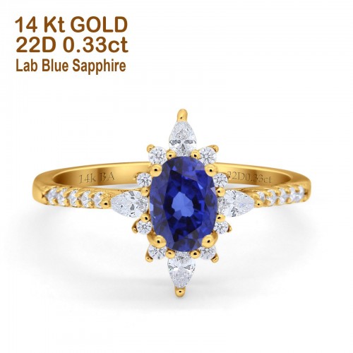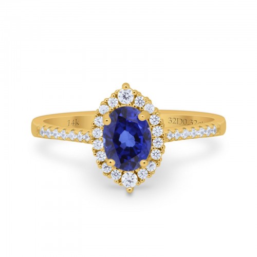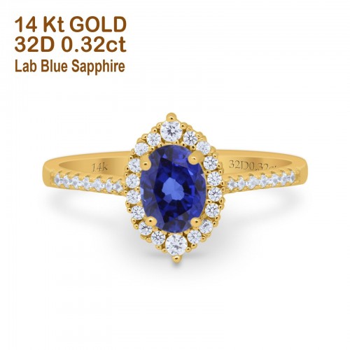 14K Yellow Gold 1.53ct Oval Nano Blue Sapphire G SI Diamond Engagement Ring Size 6.5