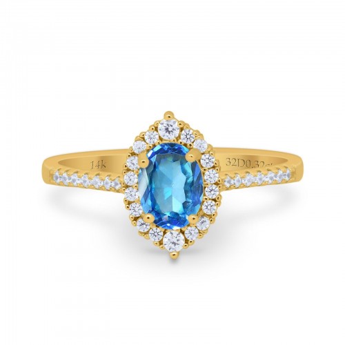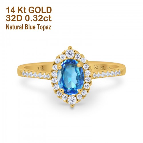 14K Yellow Gold 1.53ct Oval Natural Blue Topaz G SI Diamond Engagement Ring Size 6.5