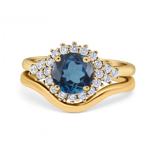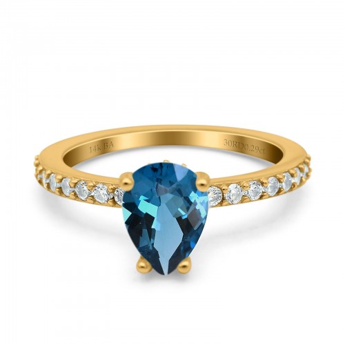 14K Yellow Gold 1.53ct Oval London Blue Topaz G SI Diamond Engagement Ring Size 6.5