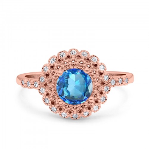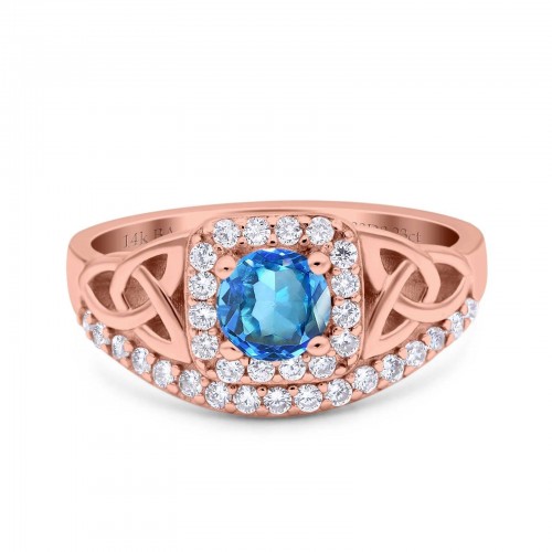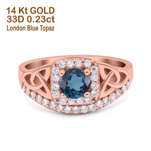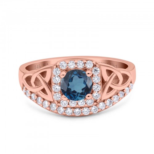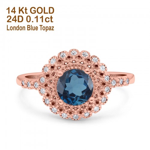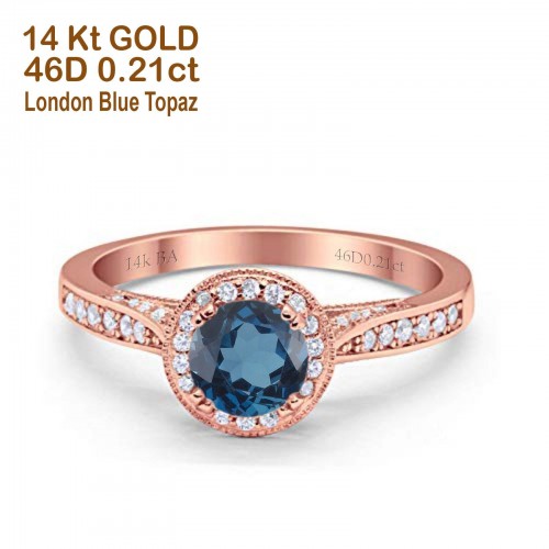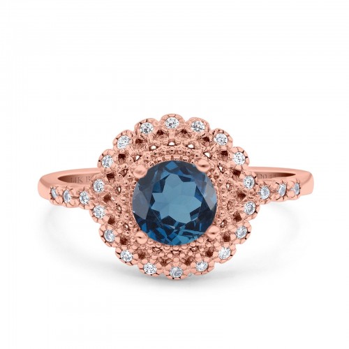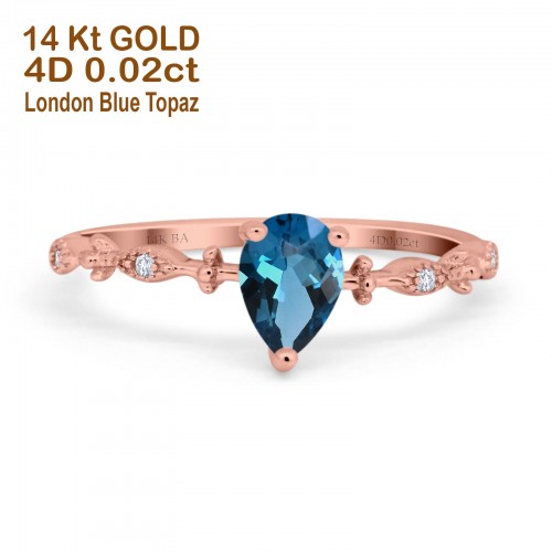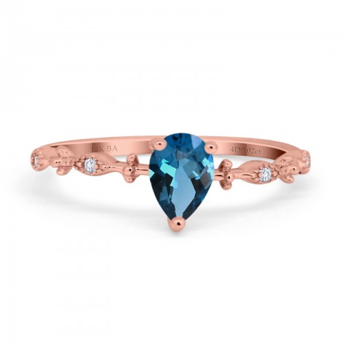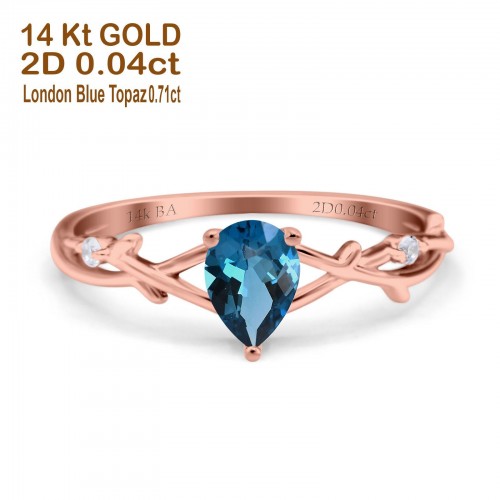 14K Rose Gold 0.75ct London Blue Topaz Pear G SI Diamond Engagement Ring Size 6.5