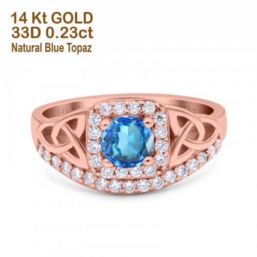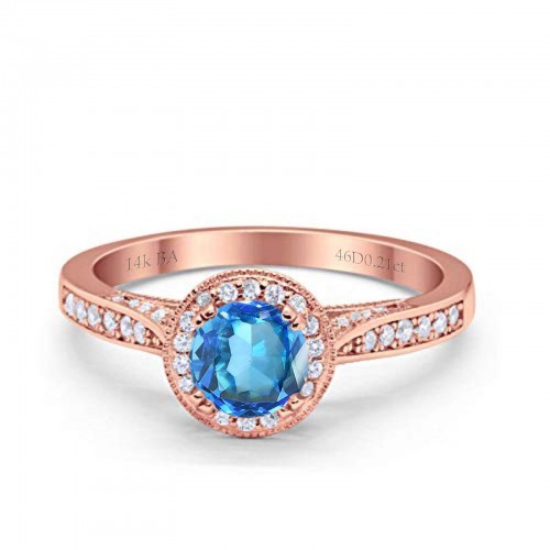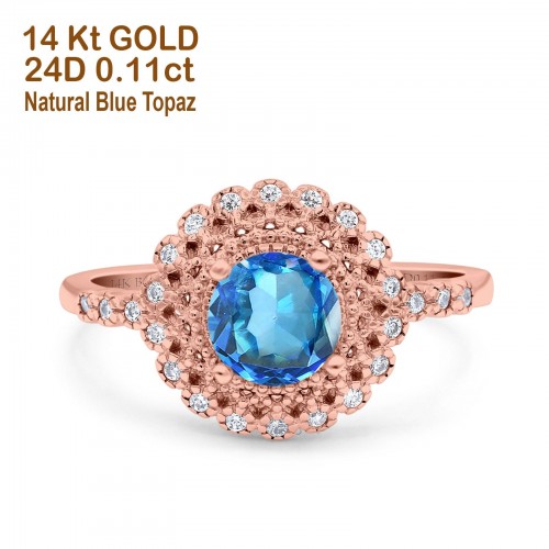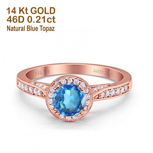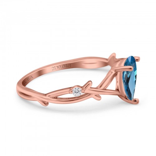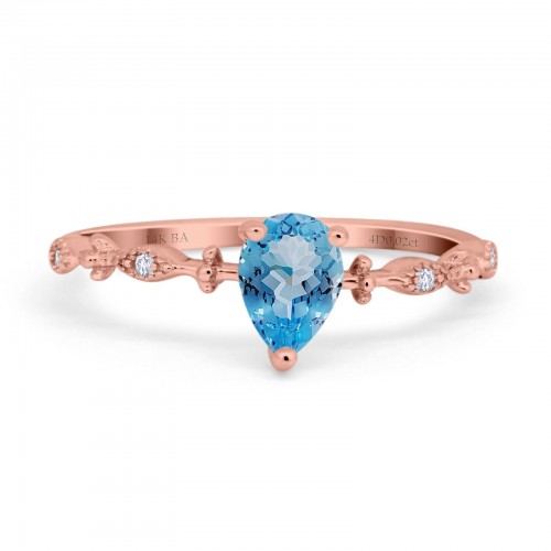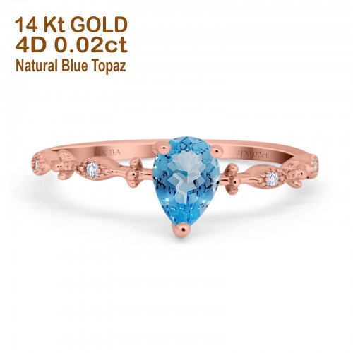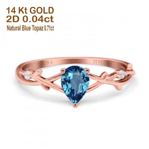 14K Rose Gold 0.75ct Natural Swiss Blue Topaz Pear G SI Diamond Engagement Ring Size 6.5