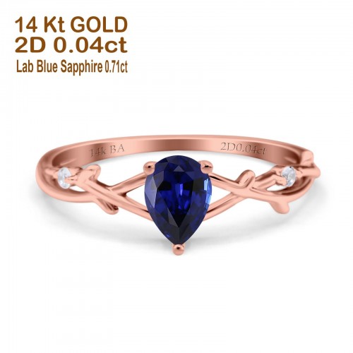 14K Rose Gold 0.75ct Nano Blue Sapphire Pear G SI Diamond Engagement Ring Size 6.5
