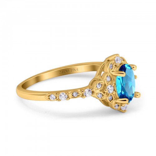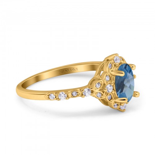 14K Yellow Gold Half Eternity Wedding Band Art Deco Design Simulated Blue Topaz CZ Ring Size-7