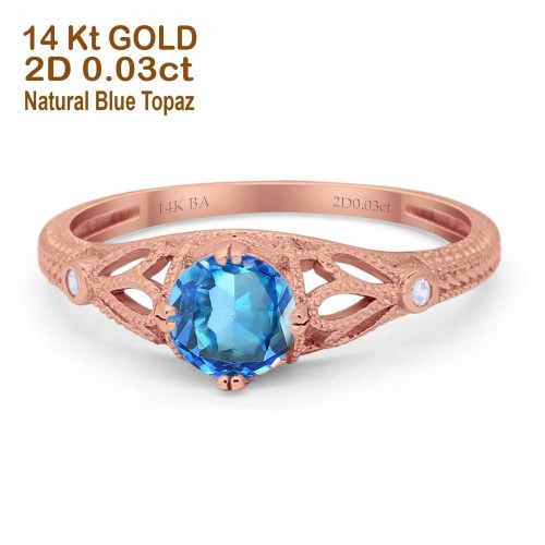 14K Rose Gold 0.87ct Round Natural Swiss Blue Topaz G SI Diamond Engagement Ring Size 6.5
