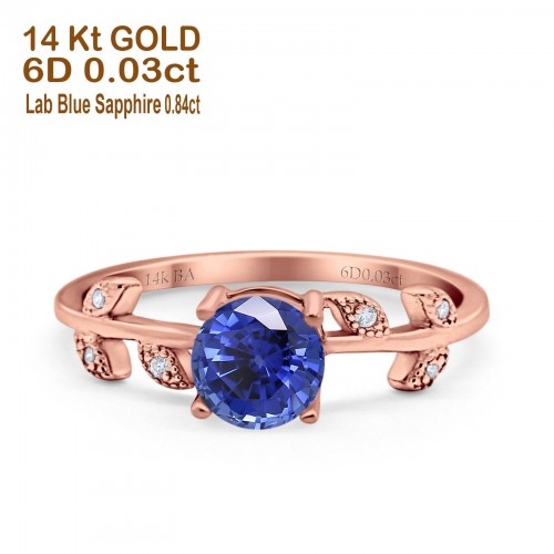 14K Rose Gold 0.87ct Round Nano Blue Sapphire G SI Diamond Engagement Ring Size 6.5