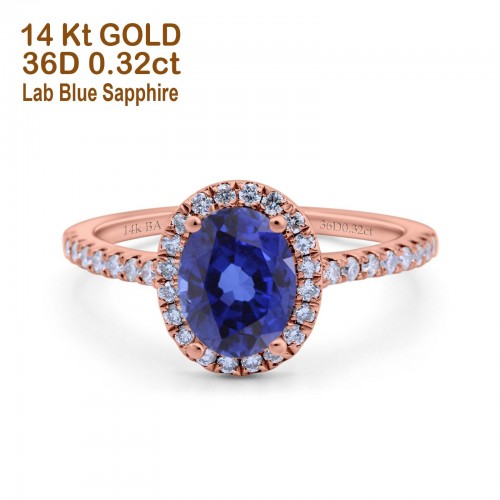 14K Rose Gold 0.93ct Oval Nano Blue Sapphire G SI Diamond Engagement Ring Size 6.5