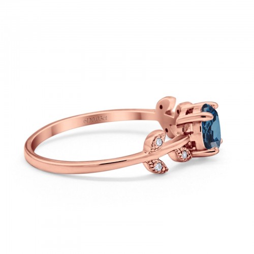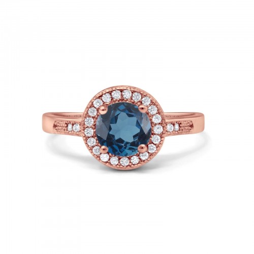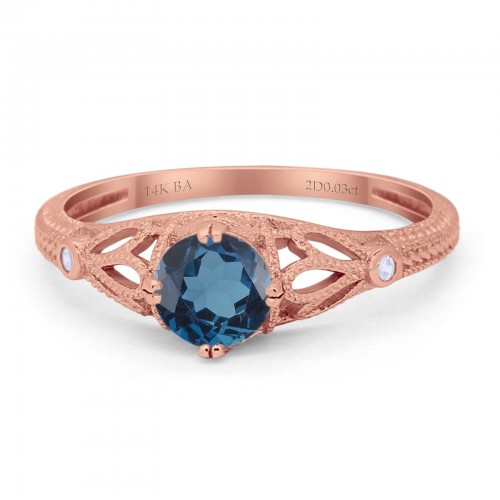 14K Rose Gold 0.87ct Round London Blue Topaz G SI Diamond Engagement Ring Size 6.5