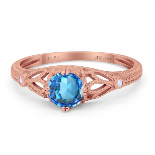 14K Rose Gold 0.87ct Round Natural Swiss Blue Topaz G SI Diamond Engagement Ring Size 6.5