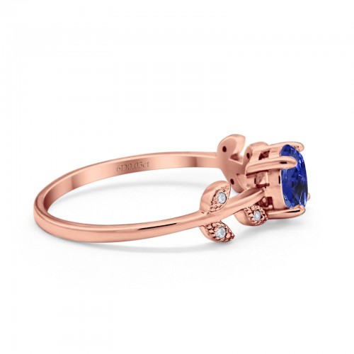 14K Rose Gold 0.87ct Round Nano Blue Sapphire G SI Diamond Engagement Ring Size 6.5