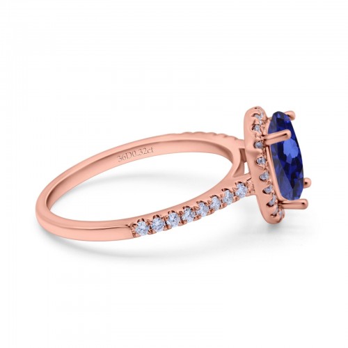 14K Rose Gold 0.93ct Oval Nano Blue Sapphire G SI Diamond Engagement Ring Size 6.5