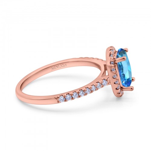 14K Rose Gold 0.93ct Oval London Blue Topaz G SI Diamond Engagement Ring Size 6.5