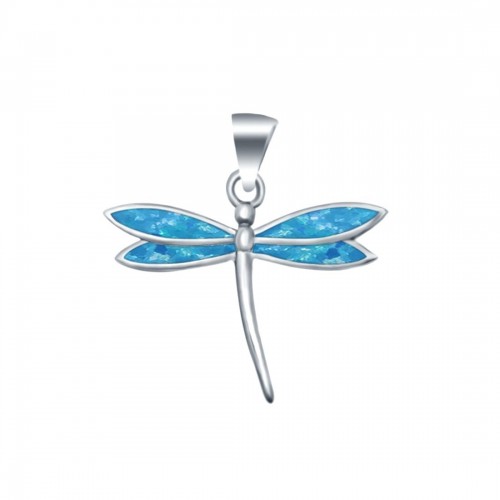 Dragonfly Design Lab Created Blue Opal Pendant 925 Sterling Silver