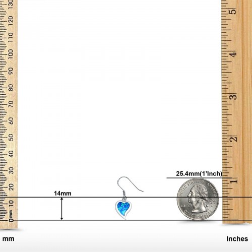 Drop Dangle Heart Earrings Lab Created Blue Opal 925 Sterling Silver (14mm)