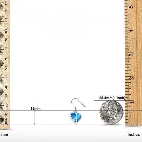 Drop Dangle Heart Earrings Lab Created Blue Opal 925 Sterling Silver (9mm)