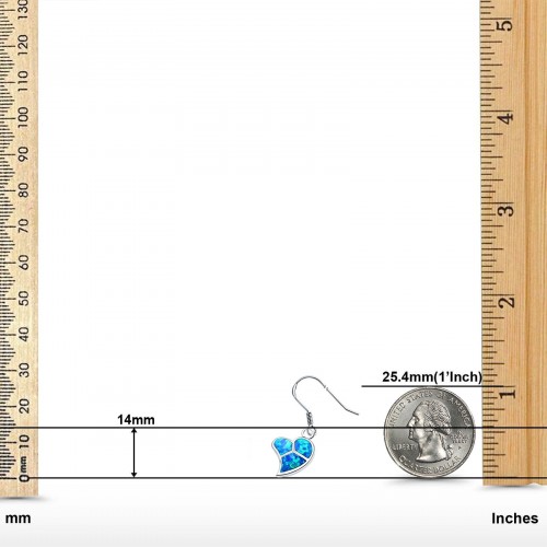 Drop Dangle Heart Earrings Lab Created Blue Opal 925 Sterling Silver(14mm)