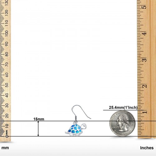 Drop Dangle Turtle Earrings Lab Created Blue Opal 925 Sterling Silver(15mm)
