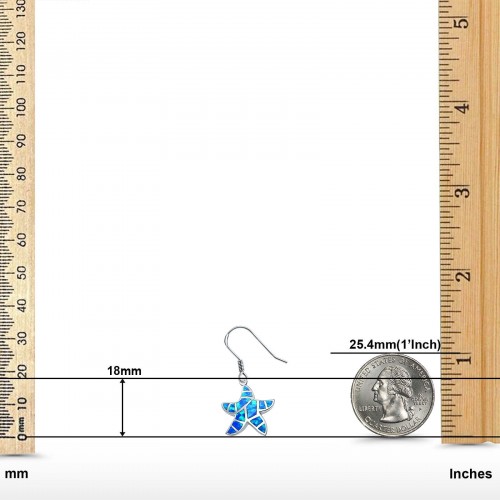 Drop Dangle Turtle Earrings Lab Created Blue Opal 925 Sterling Silver (17mm)