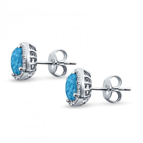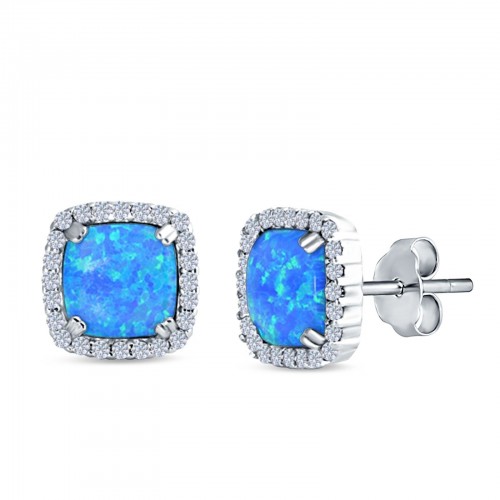 Halo Cushion Lab Created Blue Opal Round CZ Stud Earrings 925 Sterling Silver (11mm)