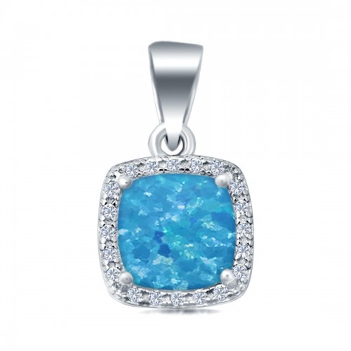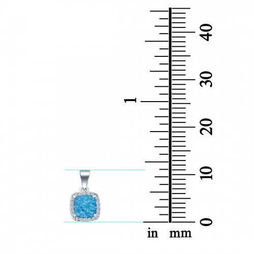 Halo Cushion Charm Pendant Lab Created Blue Opal Stone 925 Sterling Silver