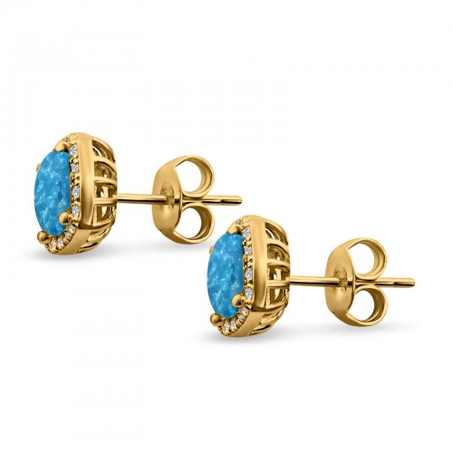 Halo Cushion Engagement Earrings Yellow Tone, Lab Created Blue Opal 925 Sterling Silver