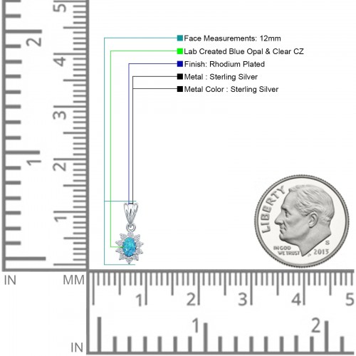 Lab Created Blue Opal & CZ Floral Pendant 925 Sterling Silver