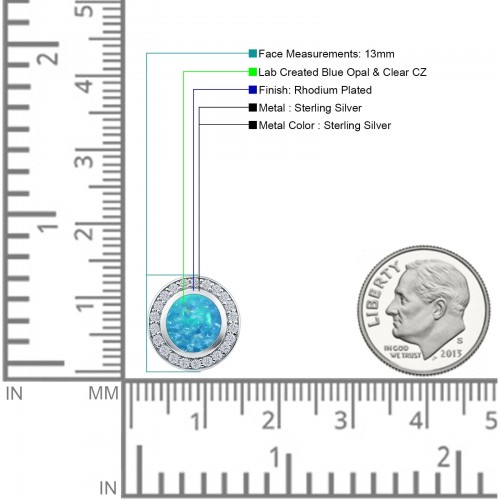 Lab Created Blue Opal & Halo CZ Round Pendant 925 Sterling Silver