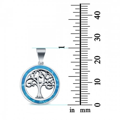Lab Created Blue Opal Family Tree of Life Whimsical 925 Sterling Silver Charm Pendant