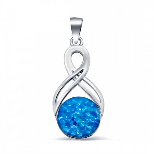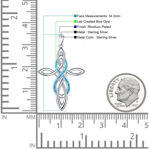 Lab Created Blue Opal Celtic Cross & Infinity Pendant 925 Sterling Silver