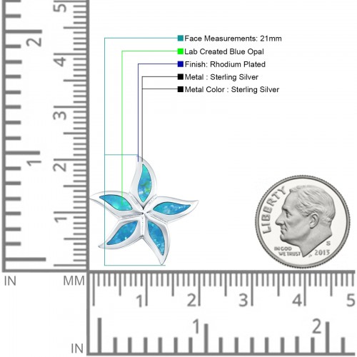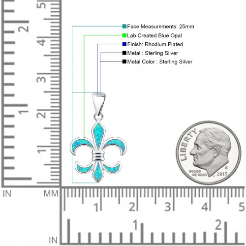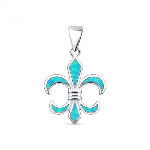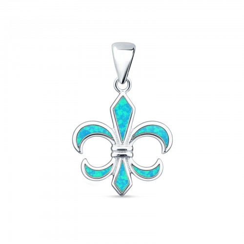 Lab Created Blue Opal Fleur De Lis Pendant 925 Sterling Silver