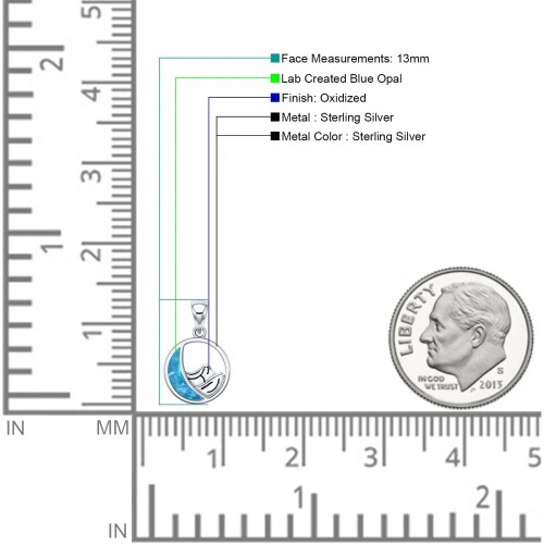 Lab Created Blue Opal Oxidized Turtle Pendant 925 Sterling Silver