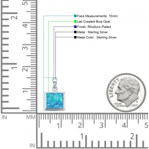 Lab Created Blue Opal Princess Cut Pendant 925 Sterling Silver