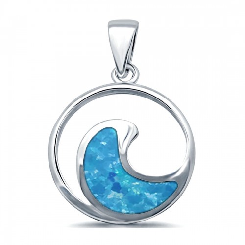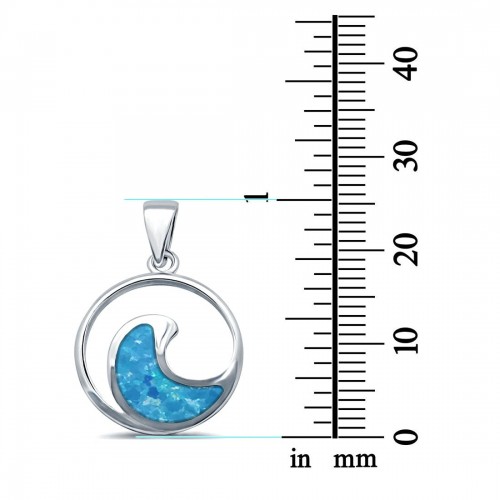 Lab Created Blue Opal Ocean Wave 925 Sterling Silver Charm Pendant