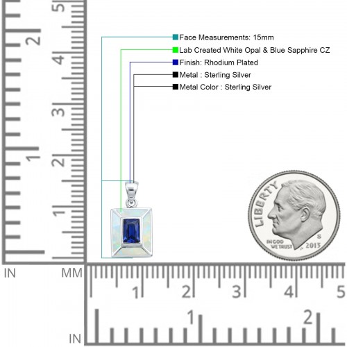 Lab Created White Opal & Blue CZ Scroll Design Pendant 925 Sterling Silver