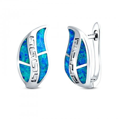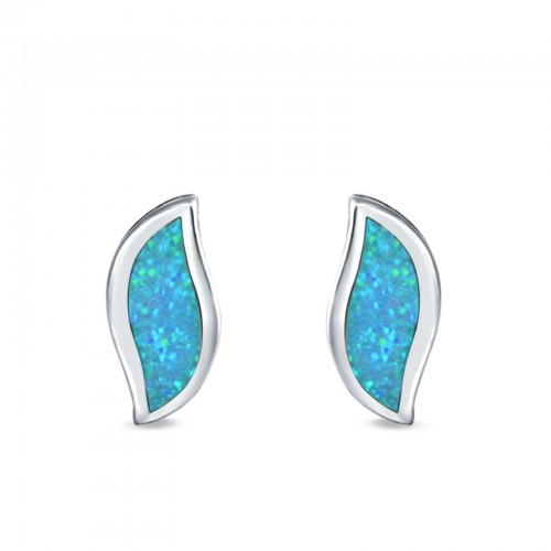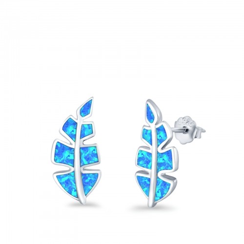 Leaf Stud Earring Created Blue Opal Solid 925 Sterling Silver (10mm)