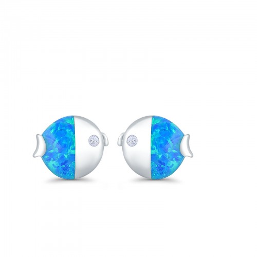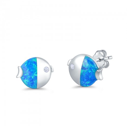Lightning Stud Earrings Lab Created Blue Opal 925 Sterling Silver (6mm)