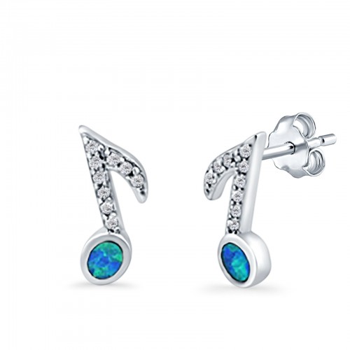 Musical Note Stud Earrings Lab Created Blue Opal 925 Sterling Silver (12mm)