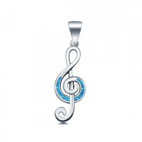 Musical Note Pendant Charm Lab Created Blue Opal Solid 925 Sterling Silver