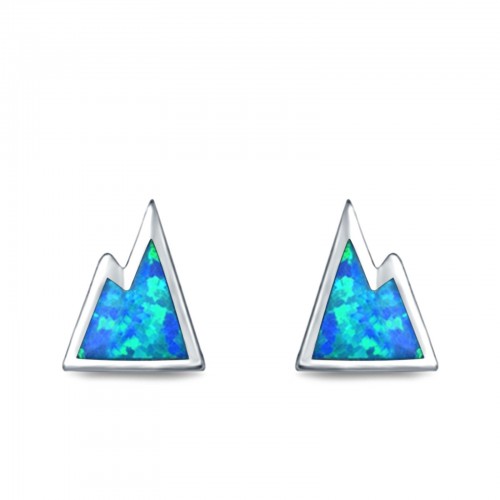 Mountain Shape Stud Earrings Lab Created Blue Opal 925 Sterling Silver (7mm)
