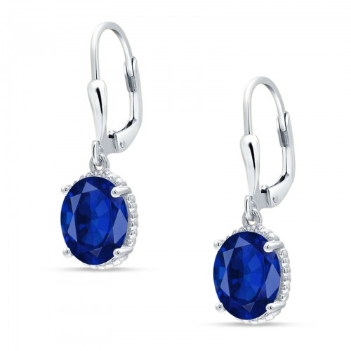 Oval Drop Dangle Charm Leverback Earring Blue Sapphire CZ 925 Sterling Silver 15mm
