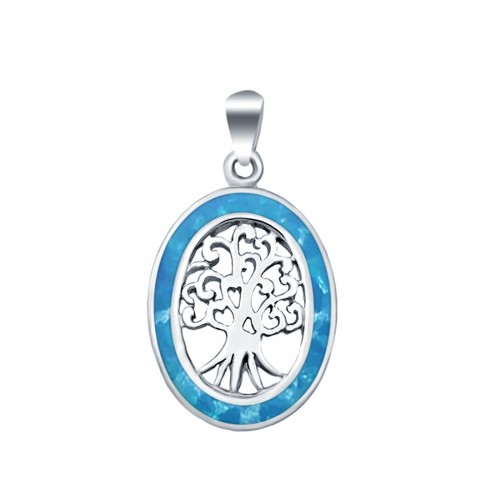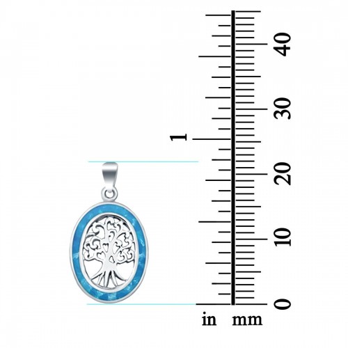 Oval Charm Pendant Tree Roots Lab Created Blue Opal 925 Sterling Silver