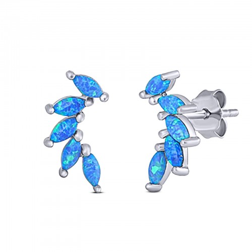 New Design Stud Earring Lab Created Marquise Blue Opal Solid 925 Sterling Silver (13.2mm)