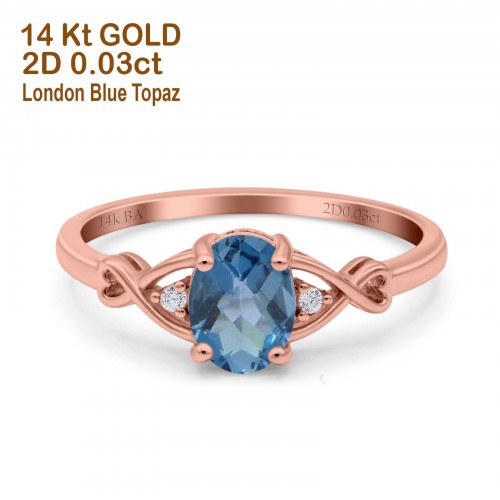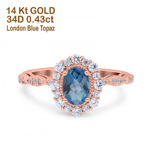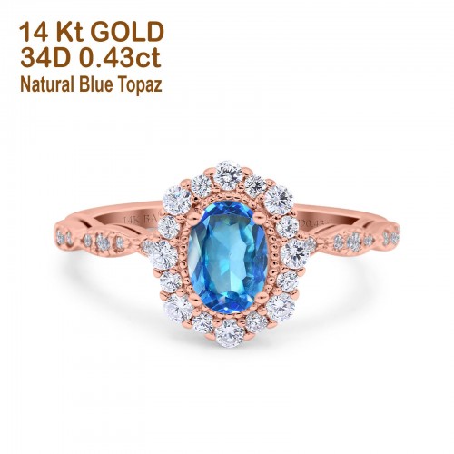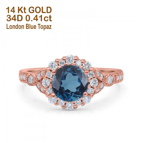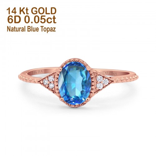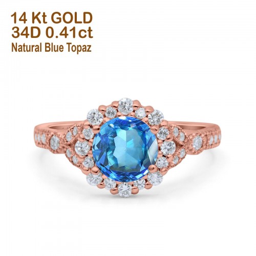 14K Rose Gold 1.16ct Round 6.5mm G SI Natural Blue Topaz Diamond Engagement Wedding Ring Size 6.5